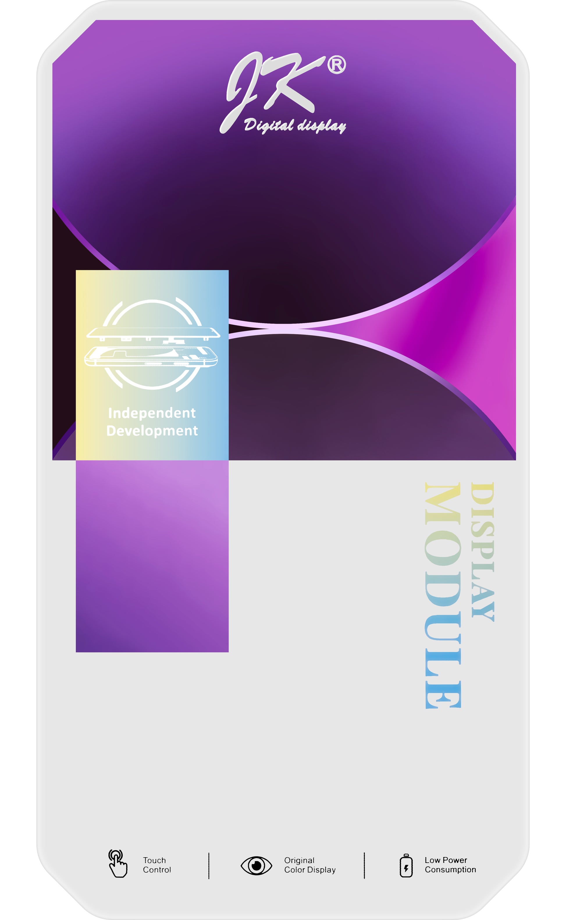 120Hz touch control, high wear resistance, wide range of colors, low power consumption.