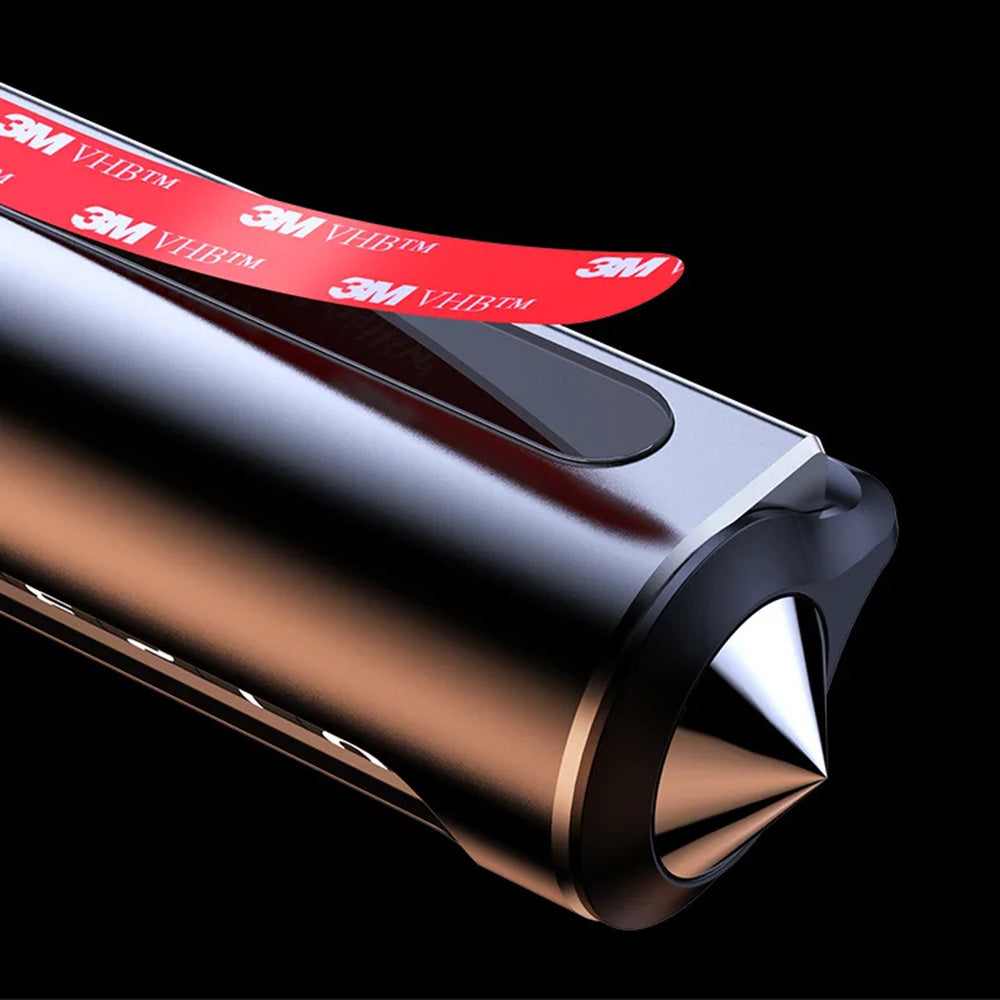 The conical end can be used in emergency situations to break the car's side window.